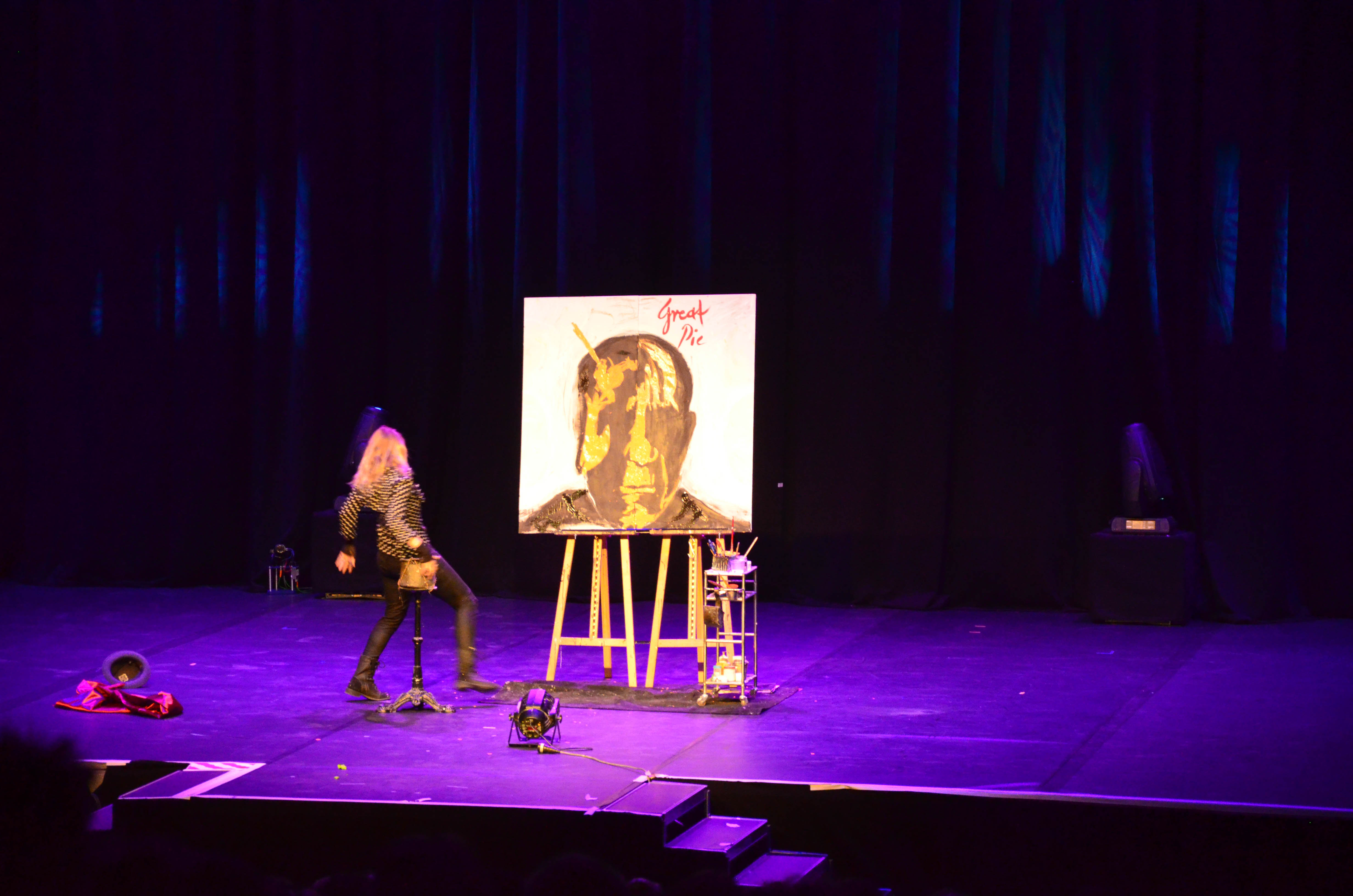 Last night speedpainter Corinne Sutter performed in Germany at the famous „Variety Evening“ during the „Internationale Kulturbörse Freiburg“. New styles, new effects and new REBUS Painting.