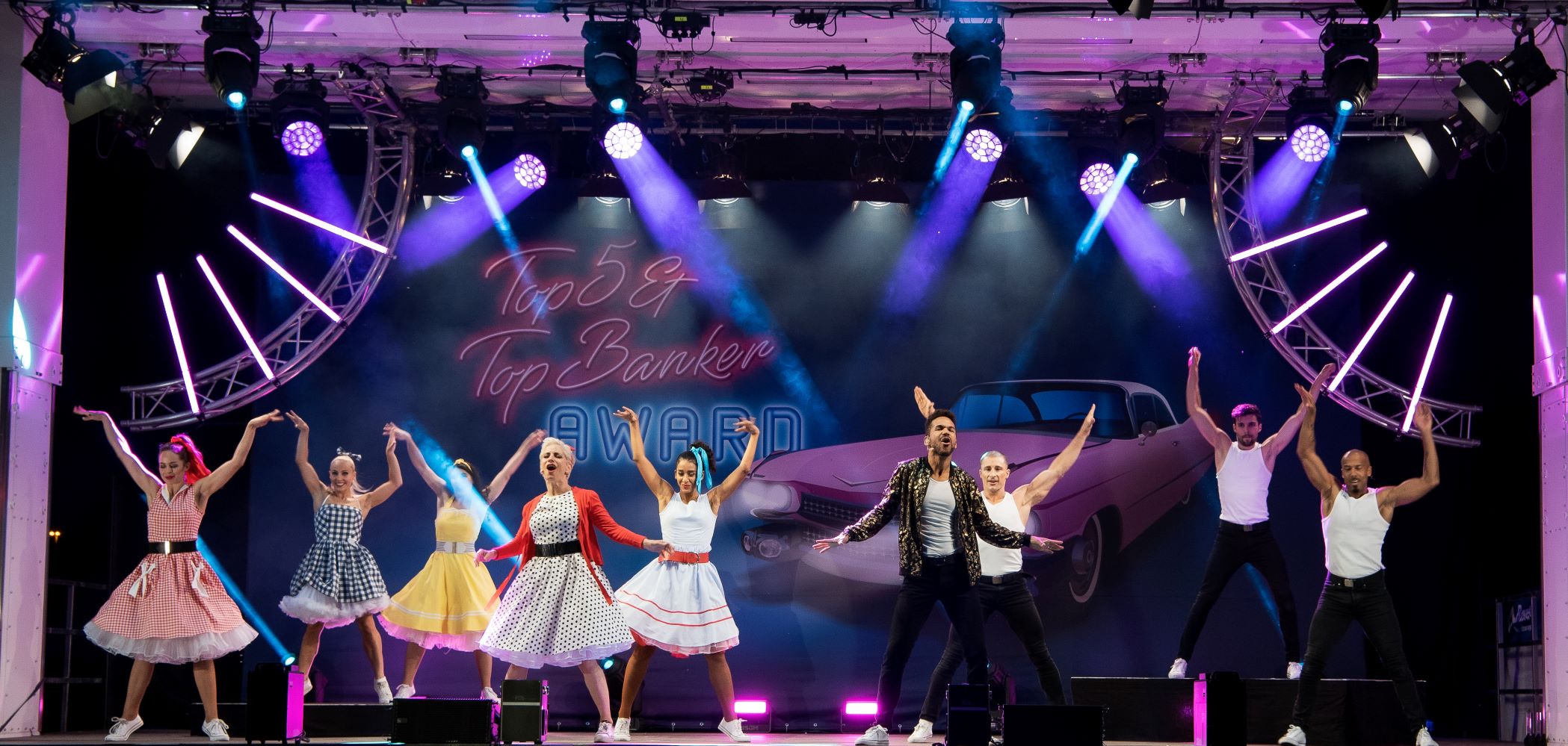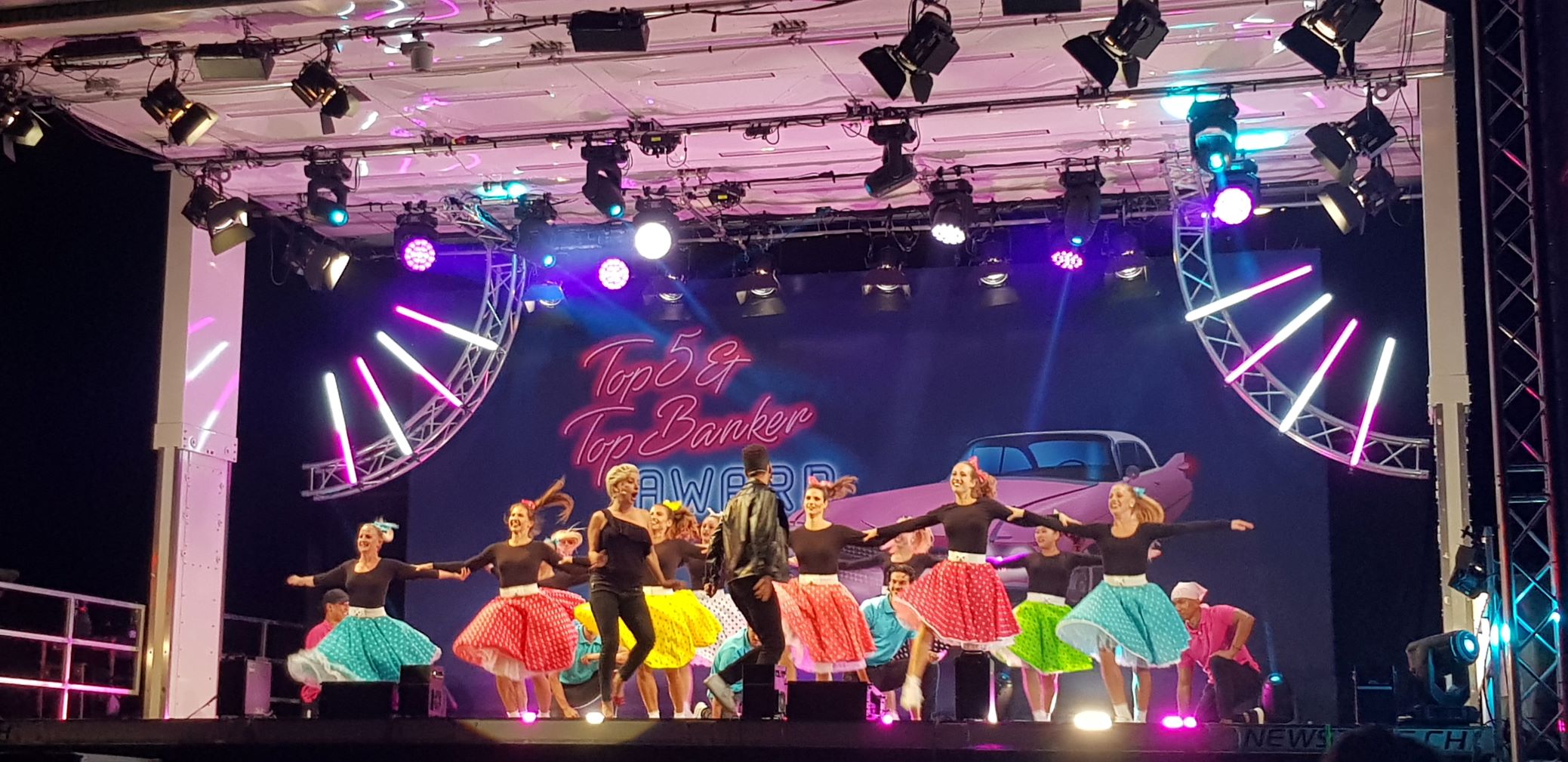 In high summer temperatures, pink and light blue Cadillacs met cool leather jackets and petticoats. And the show on the same topic came from us – wow, what an experience to be able to stage a production on a large stage again after almost 1.5 Corona-related shutdowns! Thanks to Basler Versicherung AG for their trust, especially to Corina Tschalär and Hansjörg Thoma for the excellent organisation and the fantastic cooperation!
