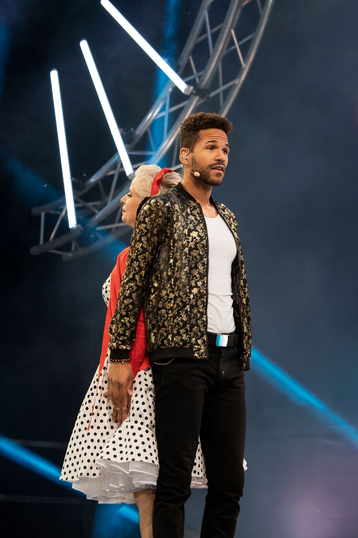 GREASE aus den 50er Jahren, versetzt in das Jahr 2021 mit dem wunderbaren Sänger Jesse Rich, der ebenso phantastischen Entertainerin Isabel Florido, dem Duo Ioulia & Fabien unseren Tänzerinnen und Tänzern und der genialen Choreographin von Tiziana Cocca – was für ein Fest!