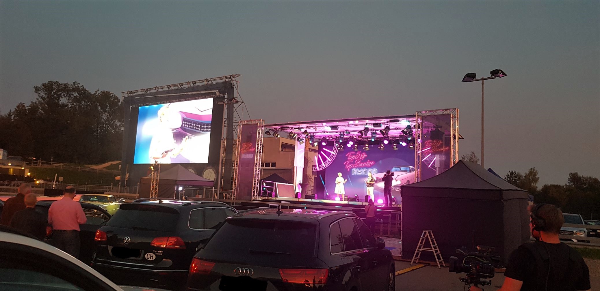 Die Prämierungsfeier des Top5 & Top Banker Awards fand am 6. September 2021 in einem sehr speziellen Rahmen statt. Nämlich nicht in einem Festsaal, sondern auf einer Bühne mit riesiger Leinwand im Autokino im TCS Betzholz in Hinwil/CH.