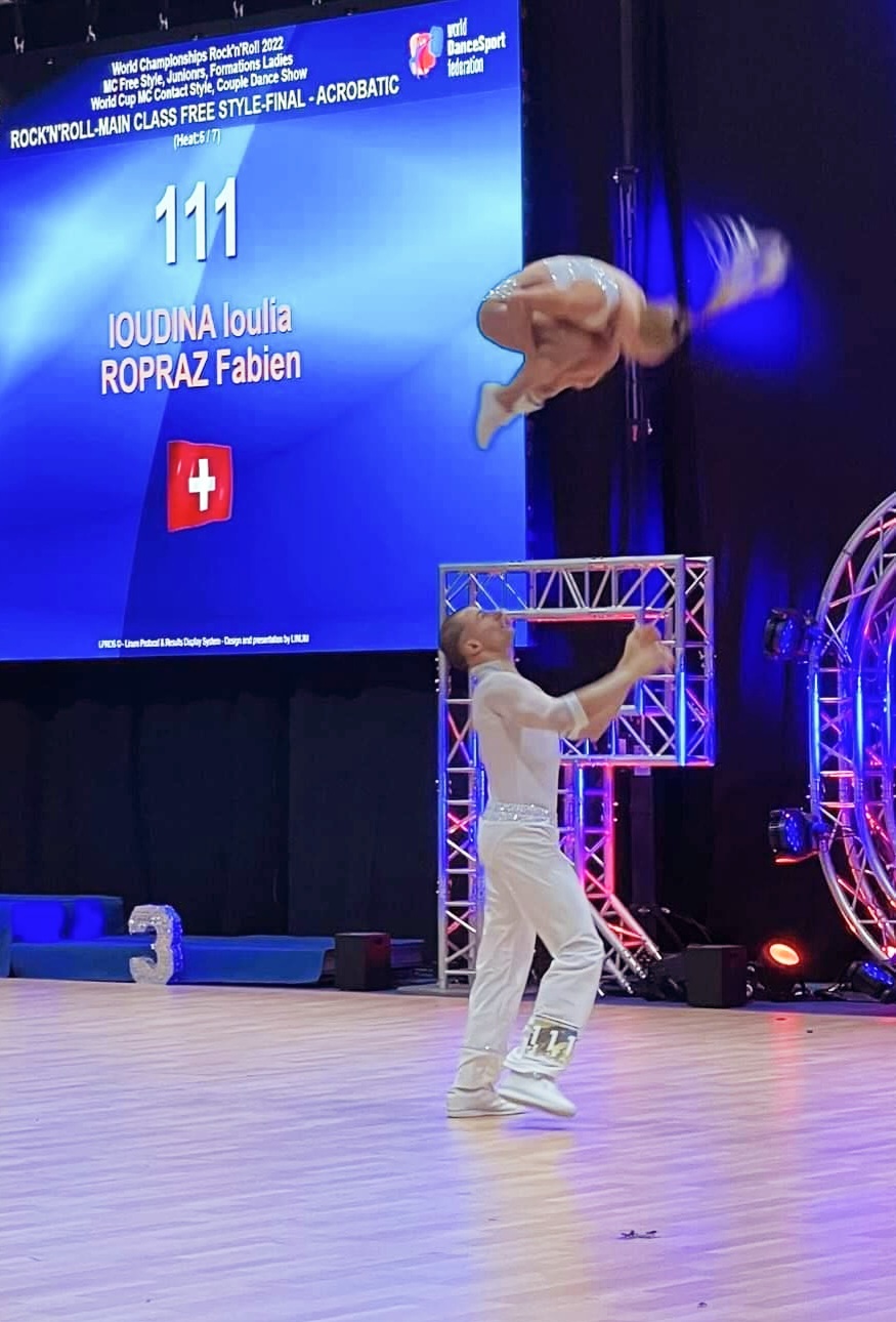 Nach zahlreichen Titeln hatten Ioulia & Fabien im Jahr 2015 beschlossen an keinen grossen Turnieren mehr teilzunehmen. Diesen Sommer, also 7 Jahre nach ihrem letzten grossen Turnier, wollten sie es aber nochmals wissen und nahmen zusammen mit ihrem Coach die Herausforderung an, an der WM der WRRC (World Rock’N’Roll Confederation) teilzunehmen. Nach schweisstreibenden Trainingstunden konnten sie sich für die WM in Lyon zur qualifizieren. Am 12.11.2022 war es dann soweit: