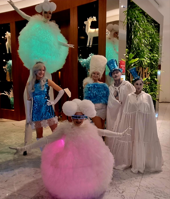 Das neue Jahr durften wir mit einem grossartigen, internationalen Ensemble einleiten – wir tragen noch immer ein breites Lächeln auf den Lippen! Herzlichen Dank an das Grand Resort Bad Ragaz für das Vertrauen, insbesondere an Oscar Mangold und Amanda Richter für die wertvolle und konstruktive Zusammenarbeit! „Dancing on Ice“ war das Thema, zu dem unsere Künstlerinnen und Künstler in eigens hergestellten Kostümen, an verschiedenen Plätzen des 5 Sterne Luxusresorts, über den gesamten Abend Showacts performten. Das extra für den Anlass zusammengestellte Ensemble bestand aus Tänzerinnen, Performern, Stelzenartistinnen, Magier, sowie Akrobatinnen und Akrobaten aus dem berühmten Cirque du Soleil. Danke auch an meine rechte und linke Hand, Tiziana Cocca und Marlies Hartmann, sowie den Make-Up Artistinnen Michaela und Lexie.