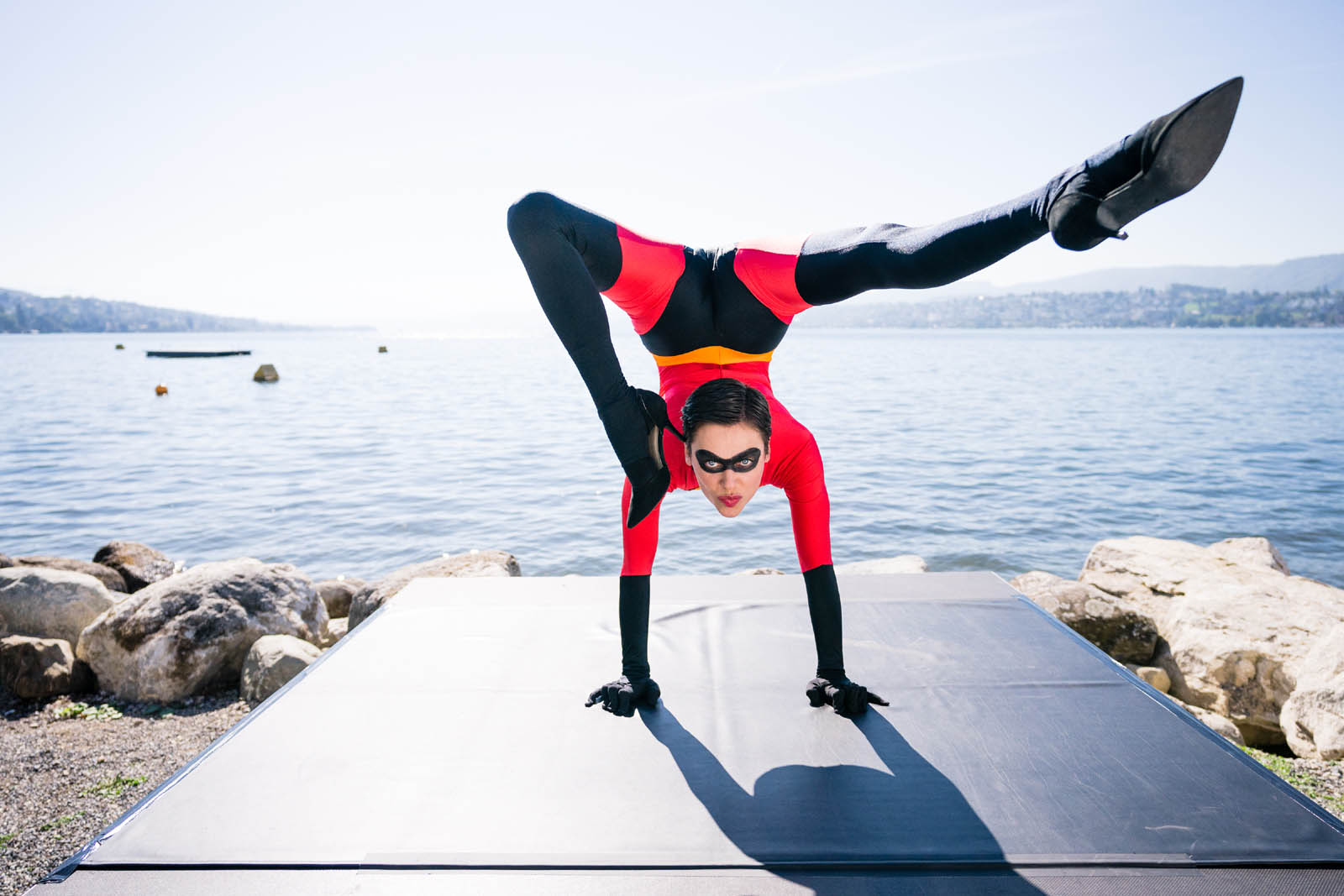 Sept 26th, we had the honor to realize a project with Walt Disney. Contortionist Nina Burri, performing as Elastigirl from the movie „The Incredibles 2“ at the beautiful lake of Zurich. The second part of Walt Disney’s successful movie will be released Sept 27th in German cinemas.